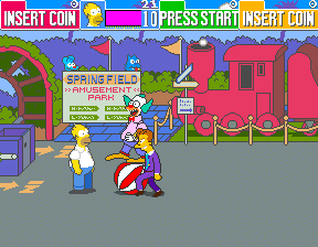 ![]() | Stage 2 is called "Krustyland," but the sign at the entrance calls the amusement park where the level takes place "Springfield Amusement Park." The show would make no mention of Krustyland until Season 4 (1992), so the game was ahead of its time. |