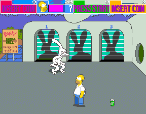 All of the level introduction sequences feature an odd-looking white rabbit character. This is Binky, the star of Matt Groening’s Life in Hell comic strip. Early Simpsons merchandise tends to contain a lot of cameos by Binky and friends.