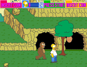 ![]() | Stage 5 is full of Bigfoot creatures. They resemble how Homer looked when he was covered with mud and mistaken for Bigfoot in episode 7G09, "The Call of the Simpsons." |